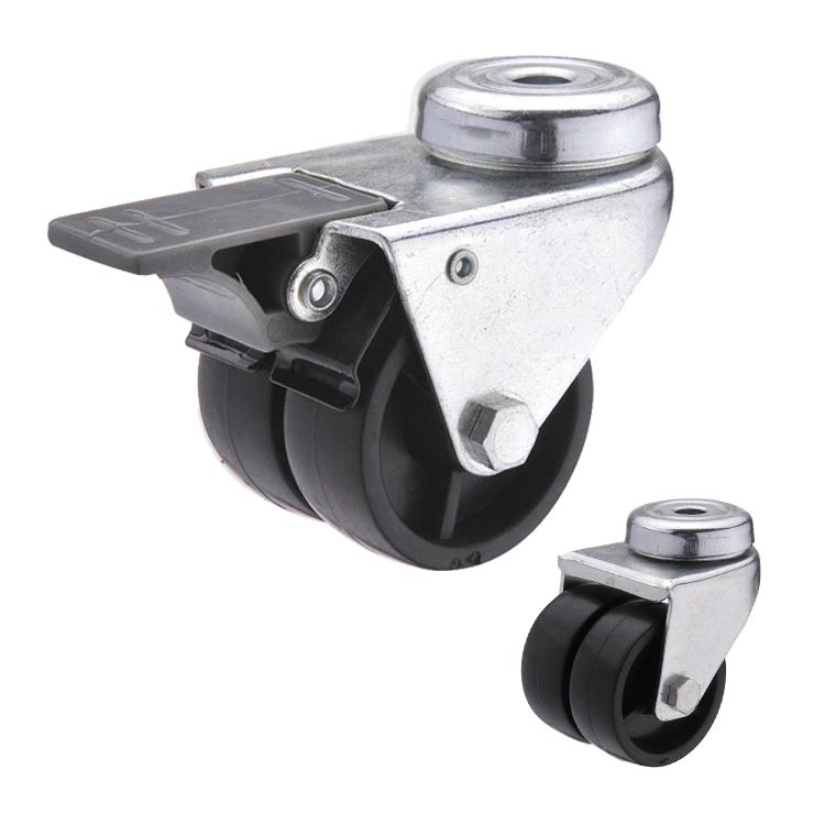 Top Plate Swivel Type Dual Wheel PP Caster With Brake