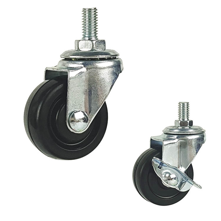 x| Product Name | YLcaster OEM 50mm Black Rubber Wheel Threaded Stem Swivel Locking Light Duty Casters | Style | Threaded Stem Rubber Locking Casters |